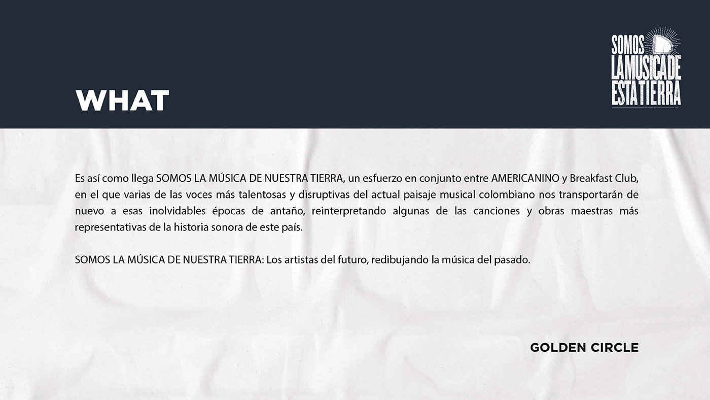 El gran desafío detrás de “Somos La Música De Esta Tierra” fue crear una campaña visual que no solo celebrara la rica herencia musical colombiana, sino que también la conectara con las nuevas voces y generaciones.